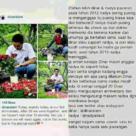 Bahkan saat itu Dinar masih mengucapkan anniversary dan mengunjungi makam Nadya membawa bunga.